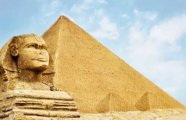 Após o café da manhã, saída para visita regular à Necrópole de Gizé, formada pelas Três Pirâmides: Quéops, Quéfren e Miquerinos; à Esfinge e ao Templo do Vale de Quéfren (não inclui entrada numa Pirâmide).