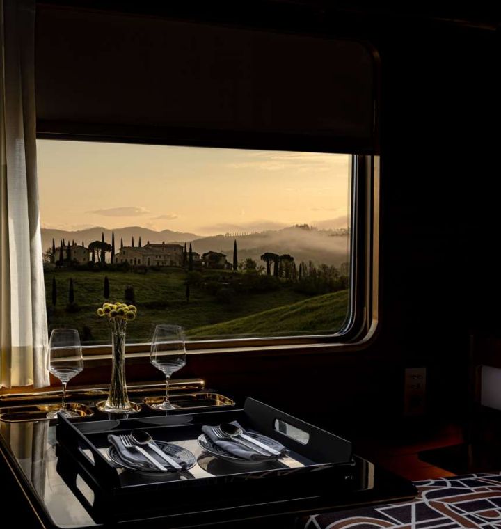 UMA VIAGEM INESQUECÍVEL EM TREM PELA ITÁLIA, Descubra a emoção de viajar a bordo do La DolceVita Orient Express, o novo trem icônico que atravessa a Itália em toda a sua beleza. Uma experiência exclusiva que combina a elegância do design italiano dos anos 1960 com o conforto refinado e a atmosfera glamourosa da era de ouro das viagens ferroviárias. Saindo de Roma, Veneza, Siena, Roma